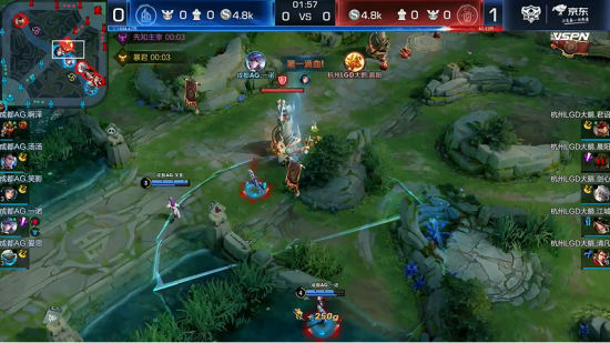 比赛初期,AG战队在团战中遇到了一些困难,WB战队的表现相当出色,给AG造成了一定的压力。然而,AG战队凭借丰富的比赛经验和冷静的应对策略,逐渐调整了战术布局。
